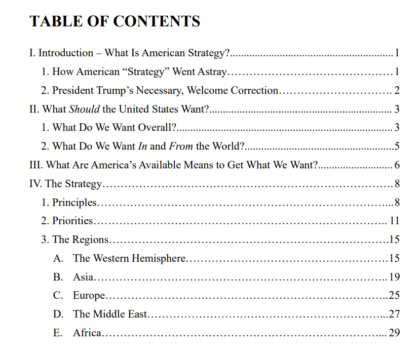 "American strategies since the end of the Cold War have fallen short—they have been laundry lists of wishes or desired end states; have not clearly defined what we want but instead stated vague platitudes; and have often misjudged what we should want."
